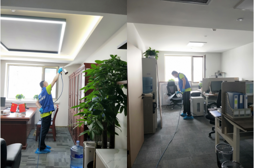 施工第1道:完全分解空氣中游離態(tài)污染物,采用方法:全空間霧化技術(shù)(空調(diào)新風(fēng)窗戶需關(guān)閉)。