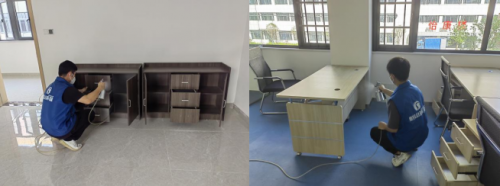 施工第3道工序:對細小家具、抽屜、床墊、木制鑲嵌柜子進行除味工作,確保異味明顯降低,無刺激異味(人員可以正常進出)。