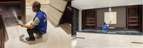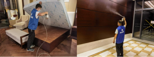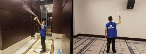 施工第1道:完全分解空氣中游離態污染物,采用方法:全空間霧化技術(空調新風窗戶需關閉)。